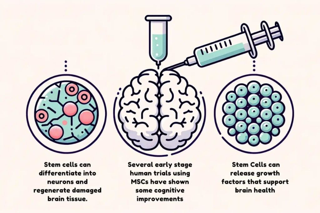 İmmunomodulyasiya və Neyroiltihabın Azaldılması: Mezeximal kök hüceyrələr (MSCs) mikroqlial hüceyrələrin aktivliyini tənzimləyərək xroniki neyroiltihabı azaldır və toxumadakı toksik mühiti yaxşılaşdırır.
